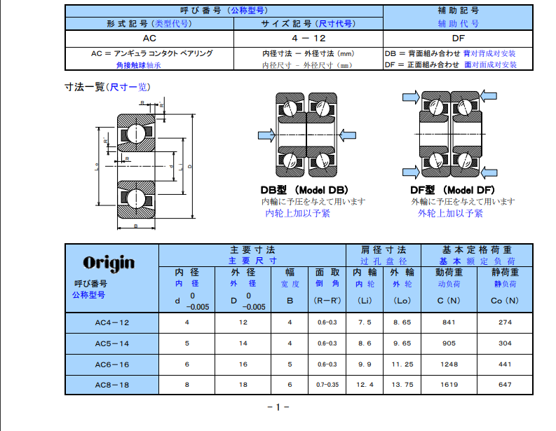 角接觸軸承是用于承受滾珠絲杠推力方向載荷的軸承,常用于機(jī)床等設(shè)備。常采用配對(duì)組合使用方式,有DB(背面組合)和DF(正面組合)。
