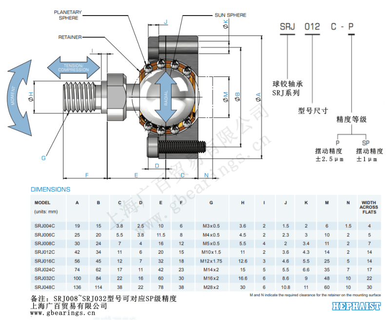 SRJ012CP 精密球鉸軸承 日本HEPHAIST 高精度定位平臺應(yīng)用 SRJ012CP價格